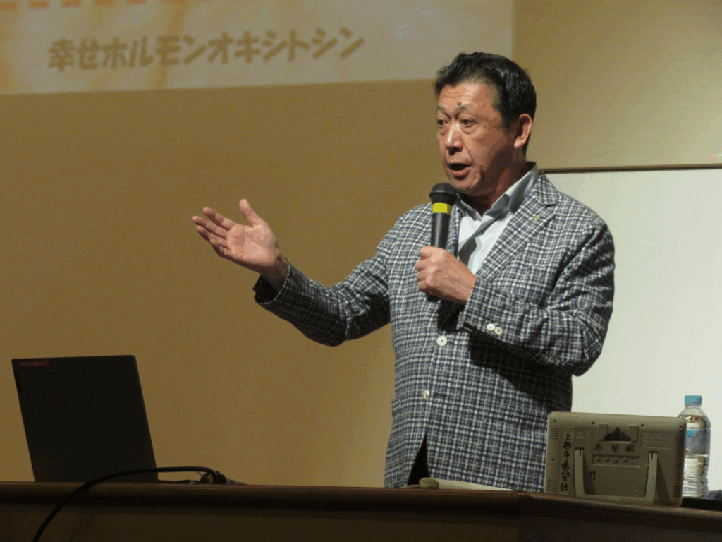 講演では、笑うことの大切さや、コミュニケーションやスキンシップがもたらす心身への良い影響について、染二さんならではのユーモアを交えながら語っていただきました、さらに、「マザリーズ」と呼ばれる話し方のポイントとして「明るく、声のトーンは高く、抑揚は大きく、スピードはゆっくり」と話すことで、相手に愛情や安心感を伝えるうえで効果的であることをご紹介されました。
