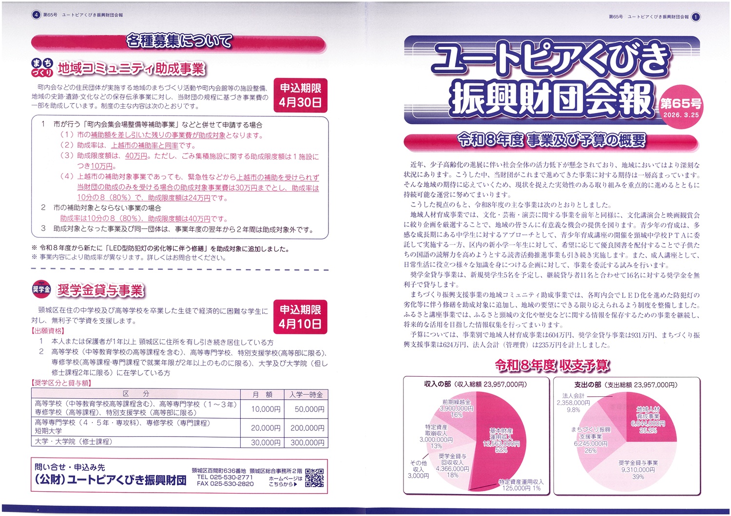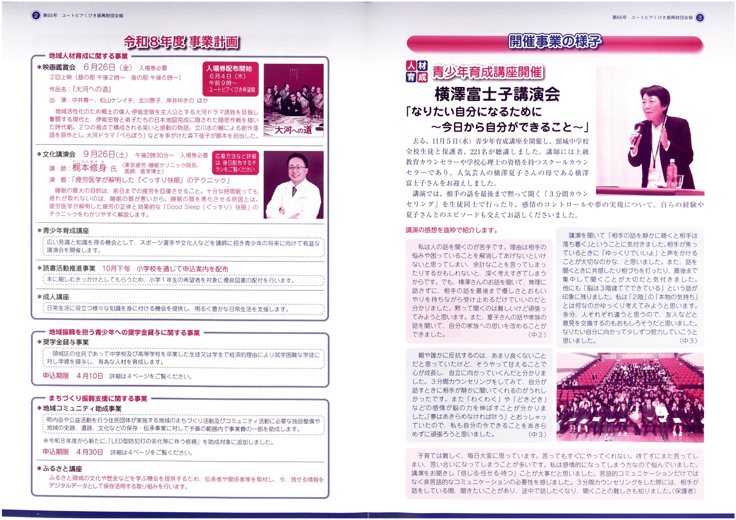 「令和8年度の事業計画、予算の概要」や「開催事業の様子」などを掲載しています。